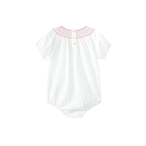 Linen Romper With Floral Smocking